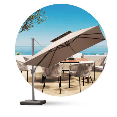 We create large-scale outdoor umbrellas designed for commercial spaces. From size and structure to fabric and finishes, every detail can be customized to fit your environment. Whether it's a café terrace, resort, courtyard, or waterfront setting, we offer dependable shade solutions built to complement nature and withstand real-world use.